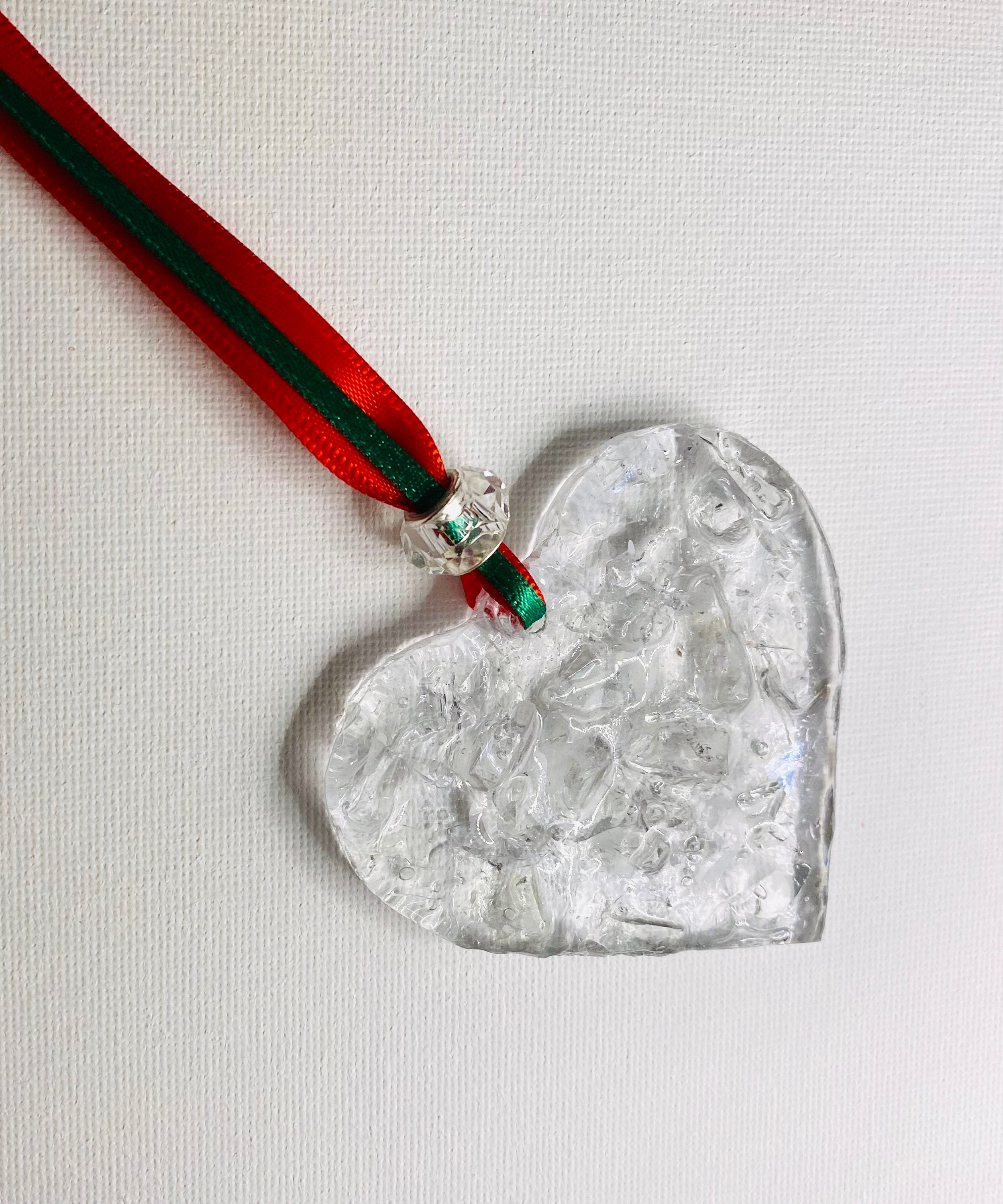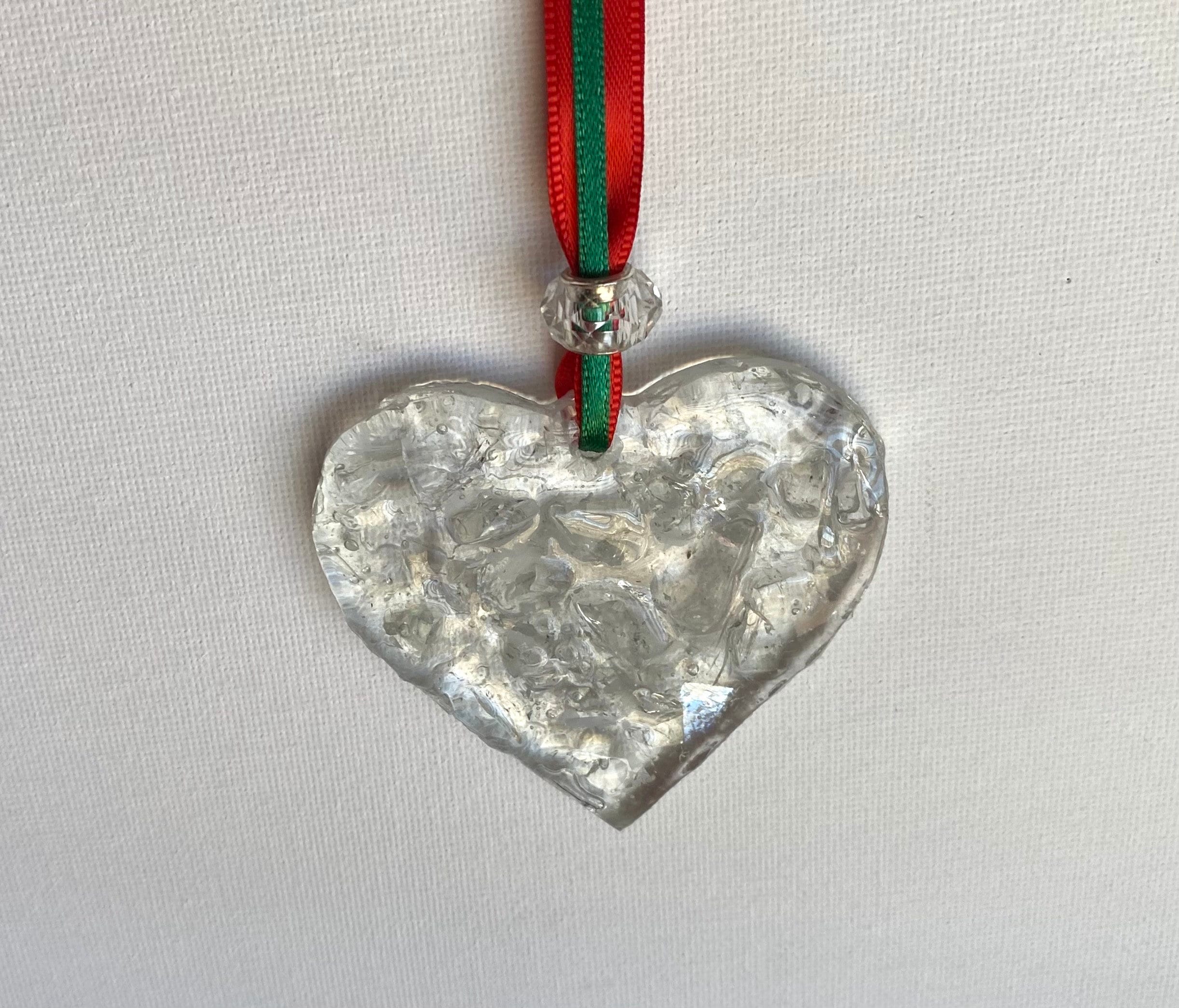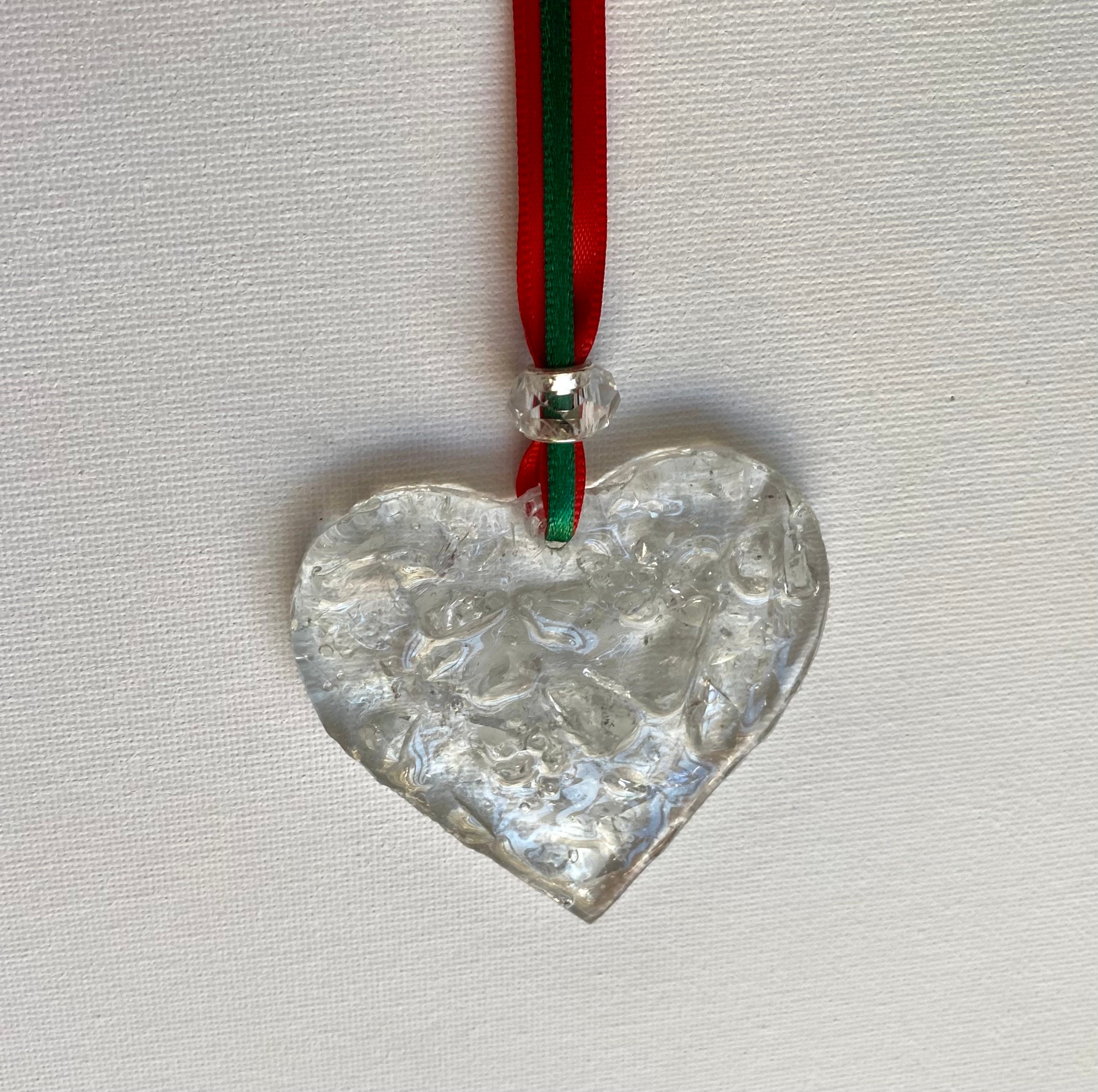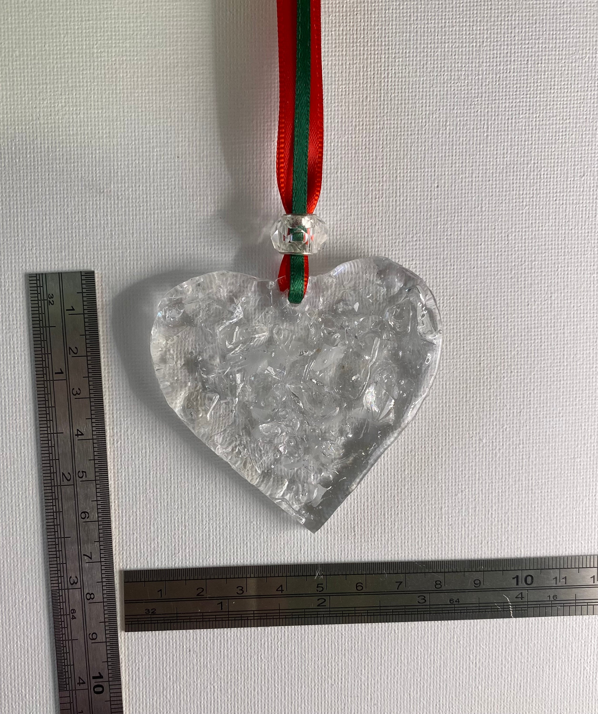 Christmas Red & Green Perfectly Imperfect Heart Ornament made from Recycled Glass