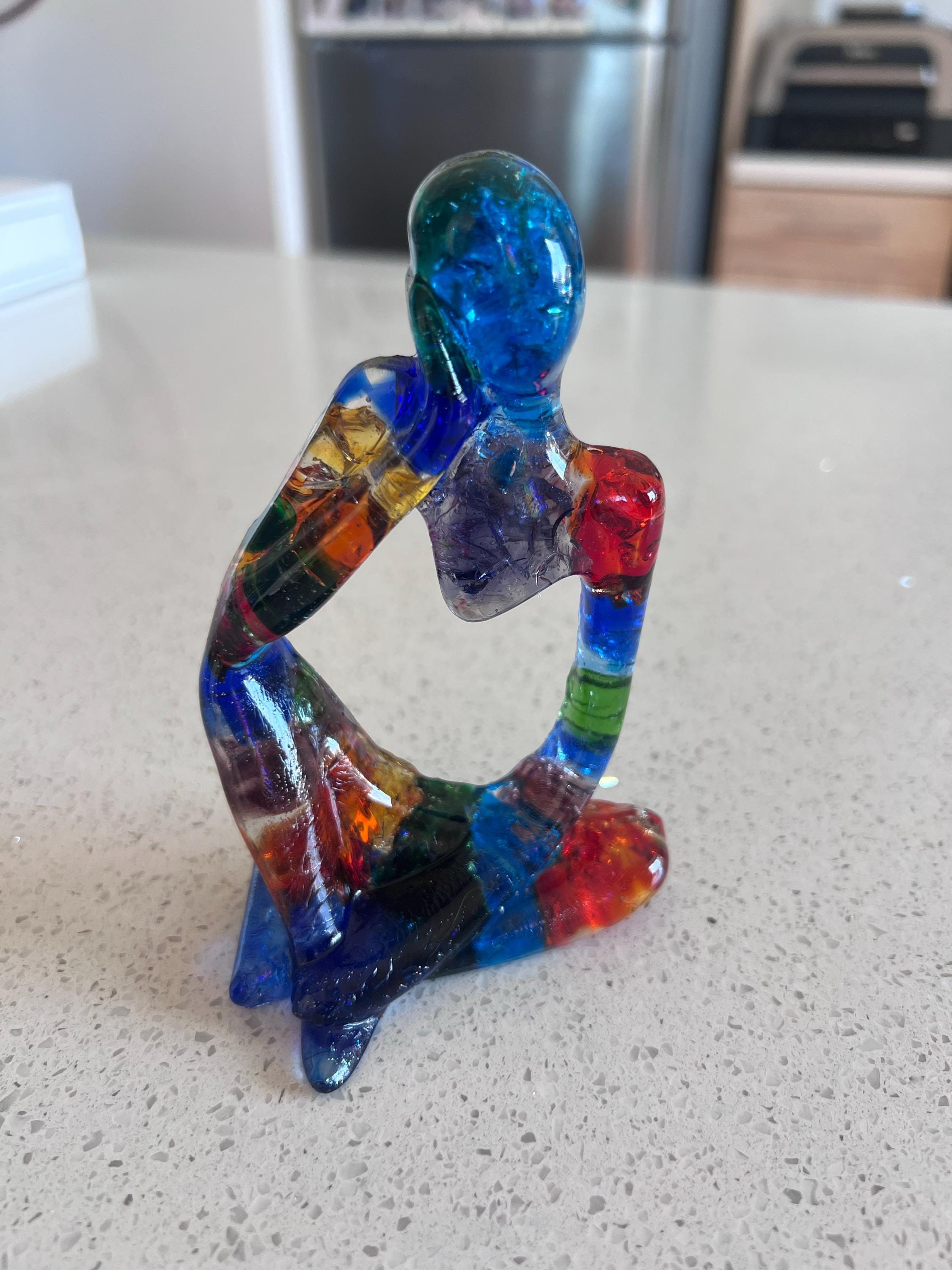 Handmade from recycled glass, this small reflective figure makes the perfect gift for you or someone special. It is a figure deep in thought, reflecting, pondering, thinking.